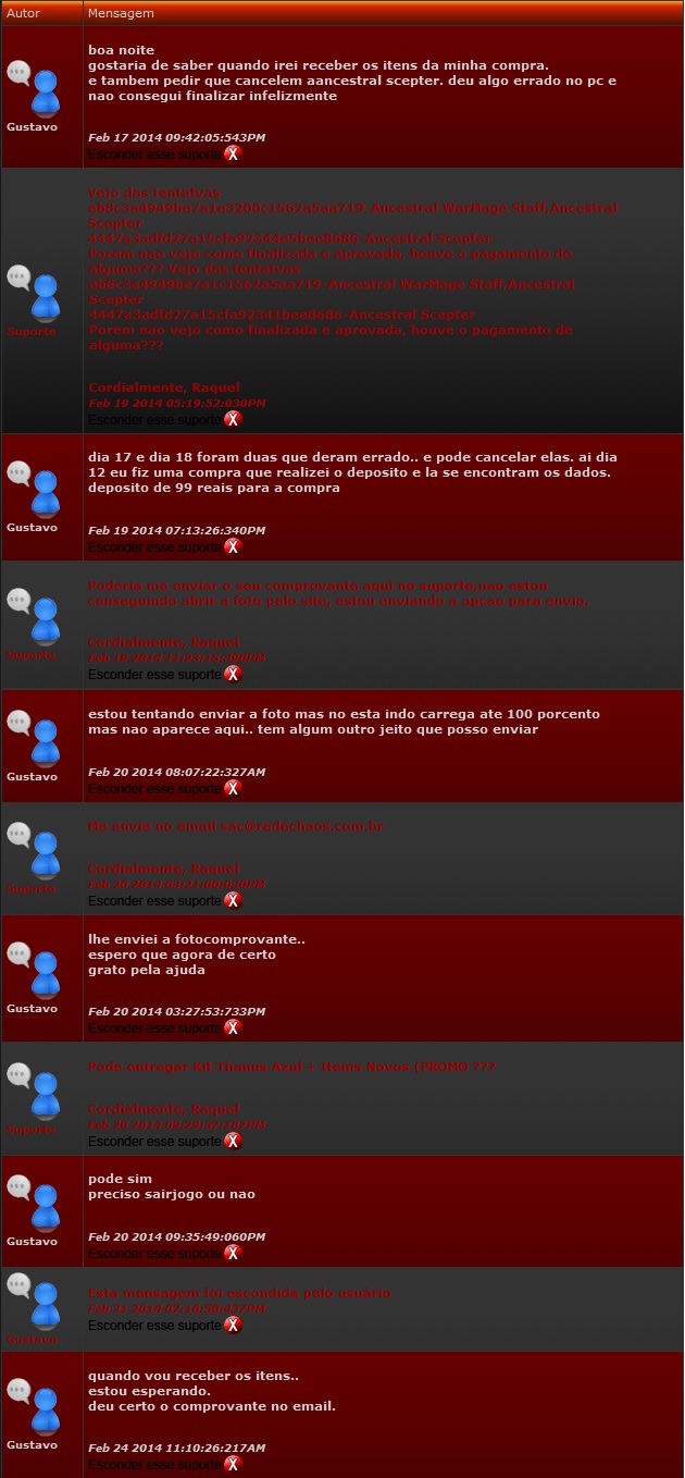 Entrei em contato com o suporte no dia 17/02 e dia 20/02 a pessoa que me atendeu perguntou se podia me entregar os itens, disse que sim, porém até hoje não recebi nada! Gostaria de saber quando receberei meus itens, já fazem 13 dias, e o prazo era 1-5 dias..