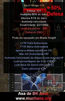 Descriçao Asa Azul de BK Com mais 50% de defesa Alem da Asa Full |