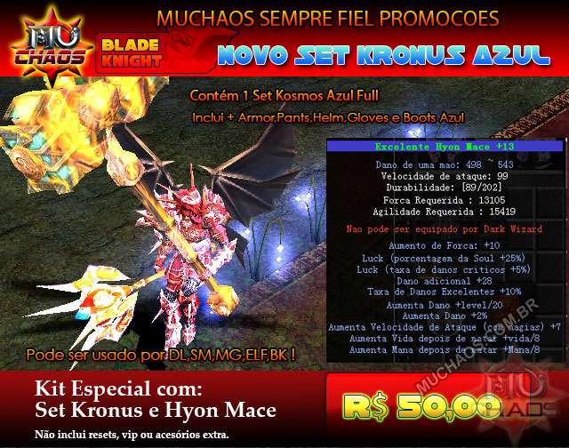 Kit Kronus totalmente AZUL , Super defesa + 1x Hyon Mace Azul Full ( Kit promocional sem v ...