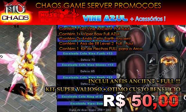 Kit Vine Ancient Full Azul + Asa de Elf Level2 Full Azul + Viper Bow Full Azul (NOVO), Ane ...